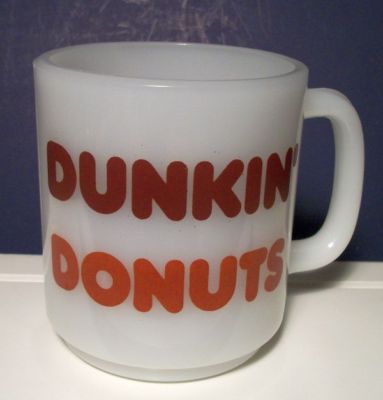 Dunkin Donuts Glasbake milk glass coffee mug Great Cond