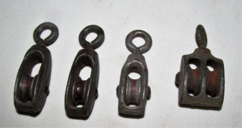 Title (ebay affiliate link): Vintage Miniature Metal Pulleys - Lot of 4 - 3 Single Wheel - 1 Double Wheel