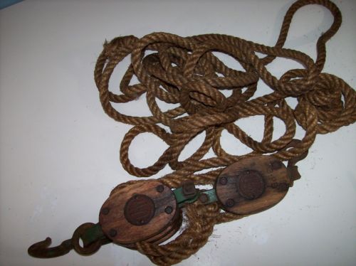 Title (ebay affiliate link): Antique UW Block Tackle Set Double Single barn pulley wood steel Pb3 w Hemp Rope