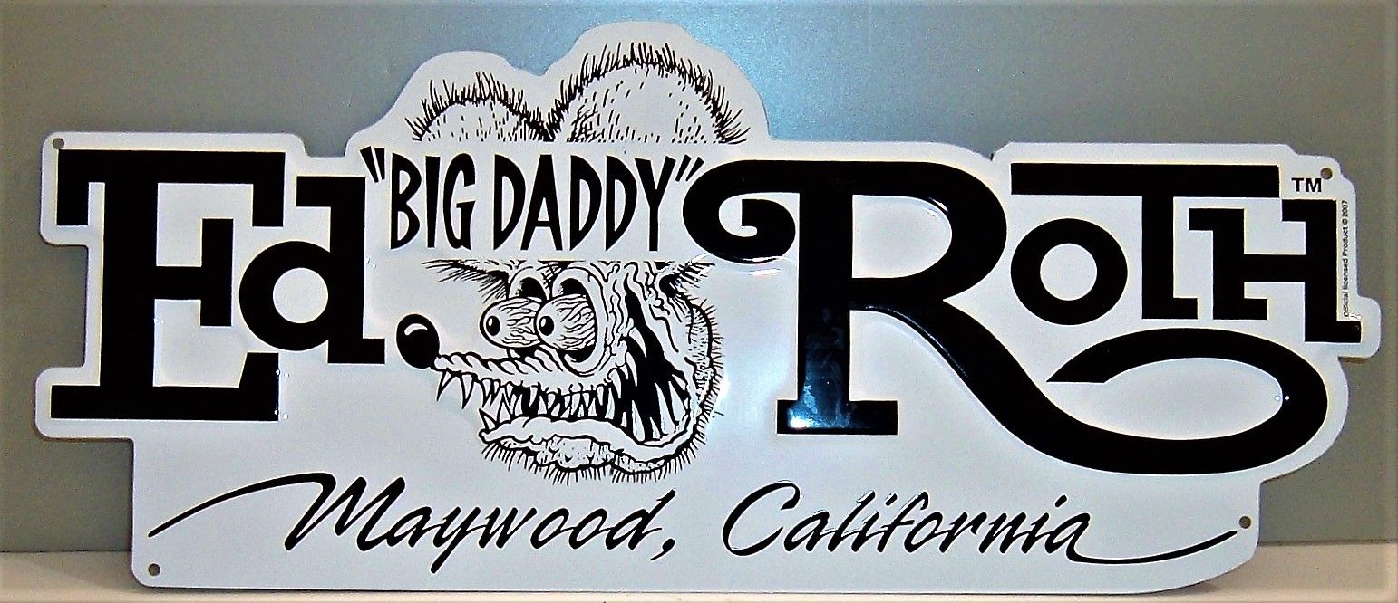 Title (ebay affiliate link): Ed Big Daddy Roth RAT FINK, Maywood, California Tribute Diecut Tin Sign