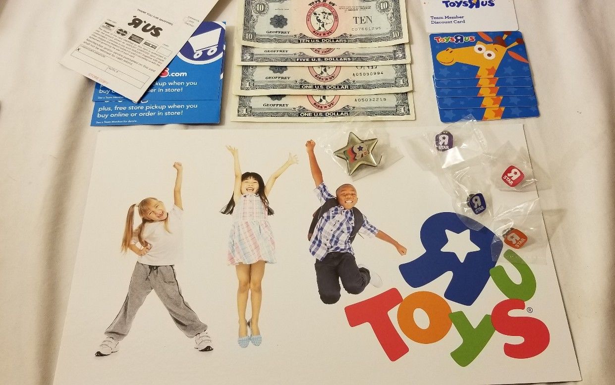 Title (ebay affiliate link): TOYS R US MEMORABILIA - GEOFFREY MONEY+PROMO PINS+PROMO SIGN