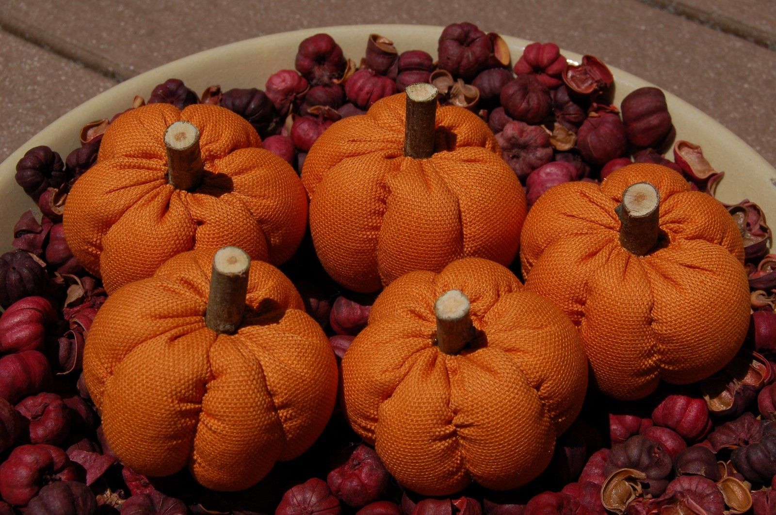 Title (ebay affiliate link): Primitive Fall Halloween Light Orange Small Pumpkin Ornies, 5