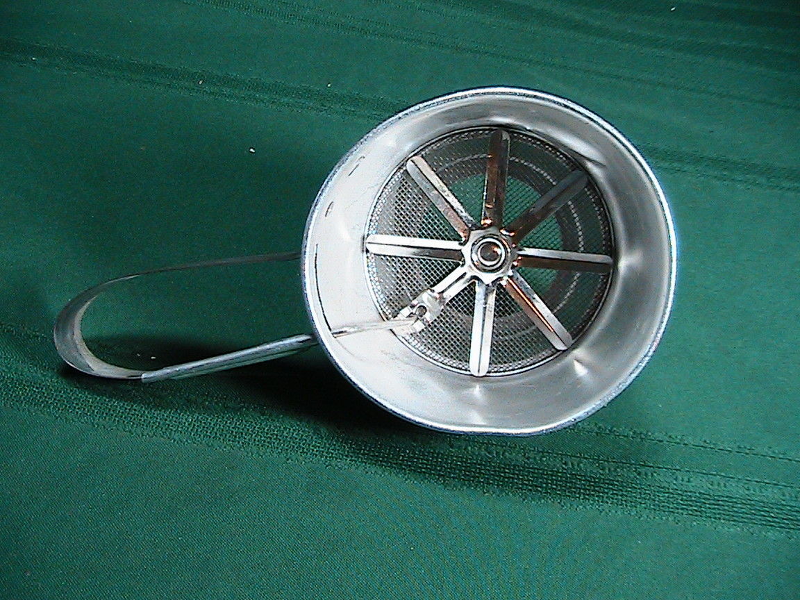 Title (ebay affiliate link): Rustic Flour Hand Squeeze Metal Sifter Antique Vintage Kitchen Primitive Foley