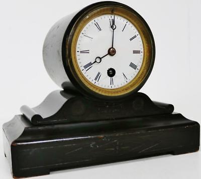 Nice French Antique Carved Ebonised Drum Head Single Train Mantel Clock C1900