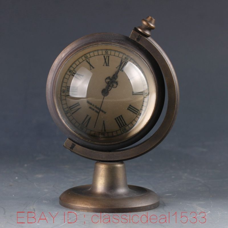 Vintage Collectible Old Chinese Brass Handwork Mechanincal Globe Clock MY0249