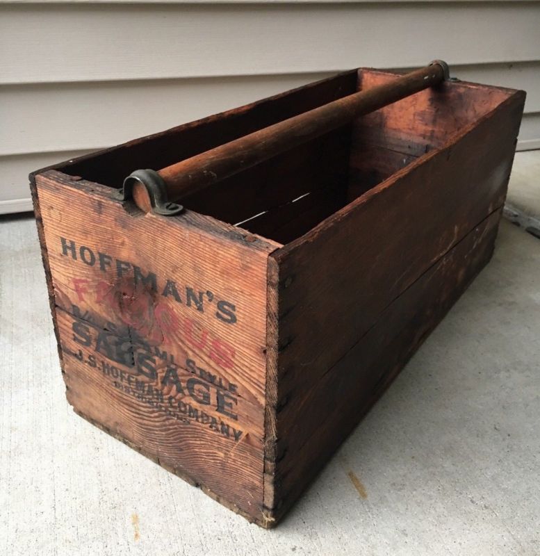 Title (ebay affiliate link): Vintage 21" Wood Rustic Tool Box Caddy Hoffman''s Famous Sausage Company Ad