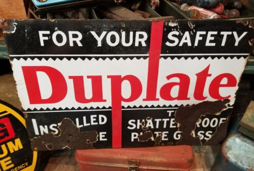 1930''s Duplate Sign Pittsburgh plate Glass Automobile Windshield Porcelain