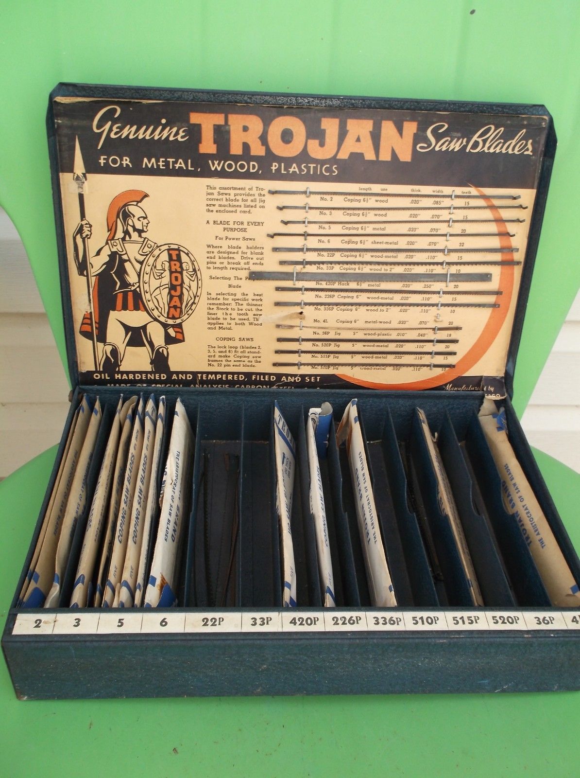 Title (ebay affiliate link): Vintage Trojan Saw Blades& Metal box Store Display. With Blades. 1940''s-1950''s.