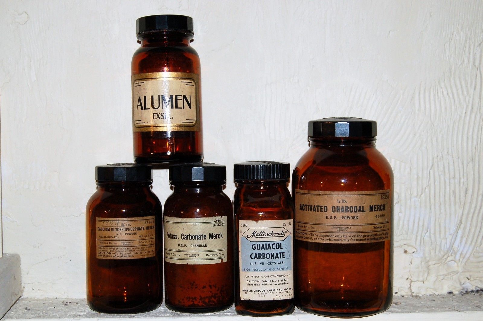 Lot of 5 Antique/Vintage Pharmacy Amber Bottles