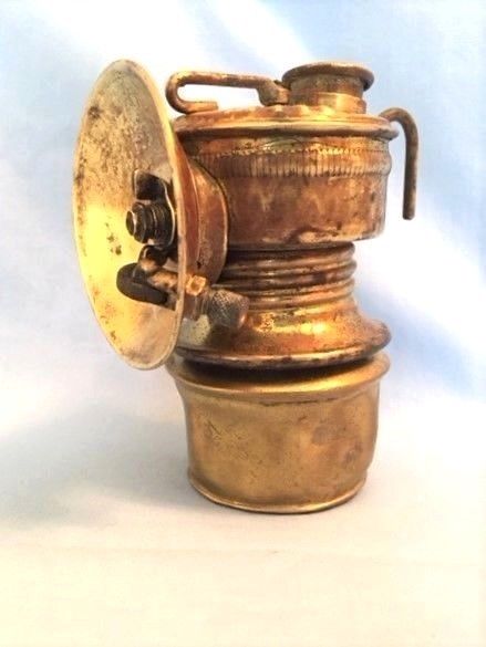 GUY''S DROPPER Miners Carbide Lamp, 2-Date 1914-16, Hex Base, Vintage Mining coal