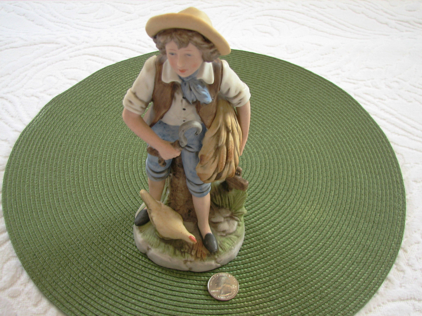 Title (ebay affiliate link): Homco Figurine Farmer Boy Sickle Wheat Chicken Ceramic Porcelain 8881
