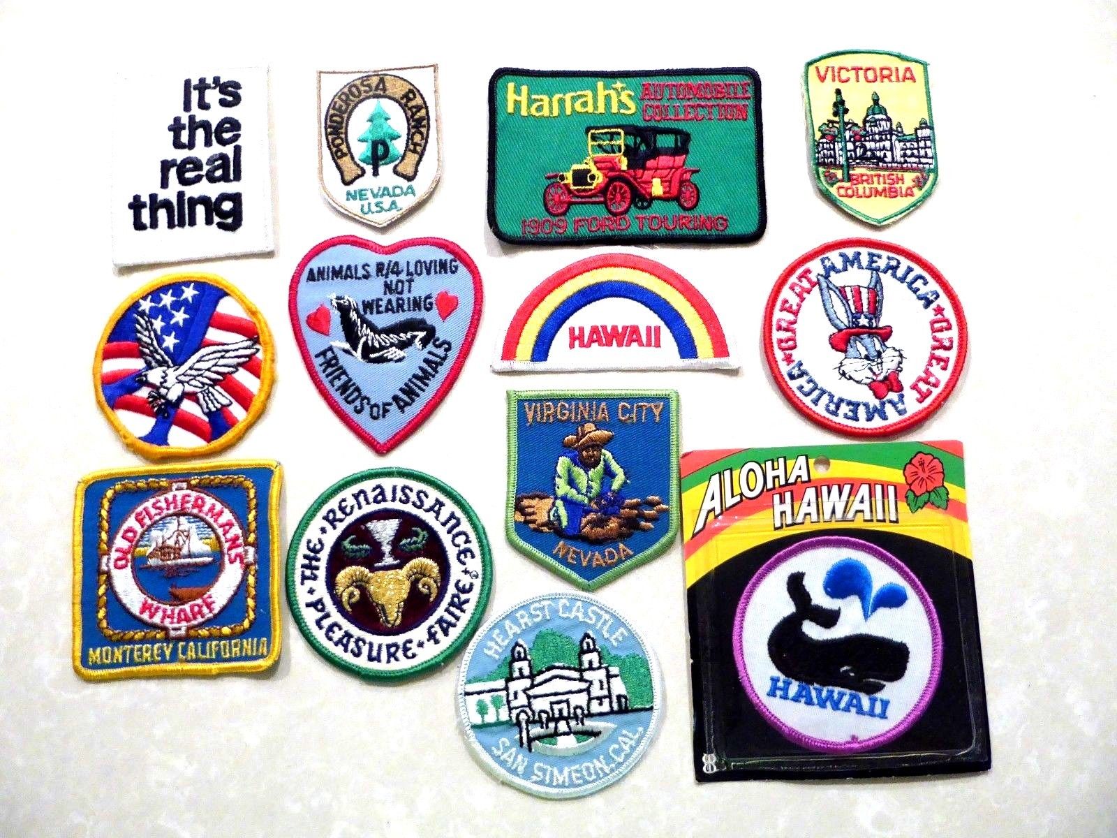 Title (ebay affiliate link): 1970s Patch lot of 13 Hawaii California travel souvenirs Coca Cola Great America