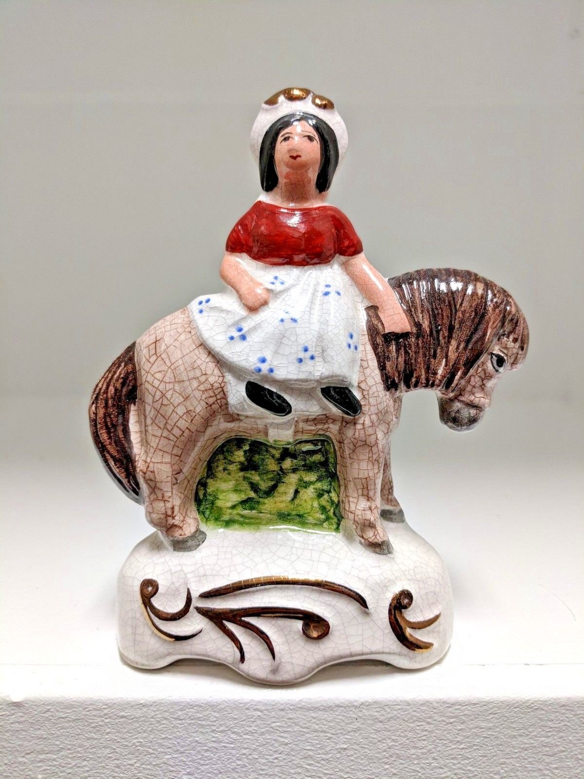Staffordshire Figurine (Flat Back) - Woman on Horse **Antique**