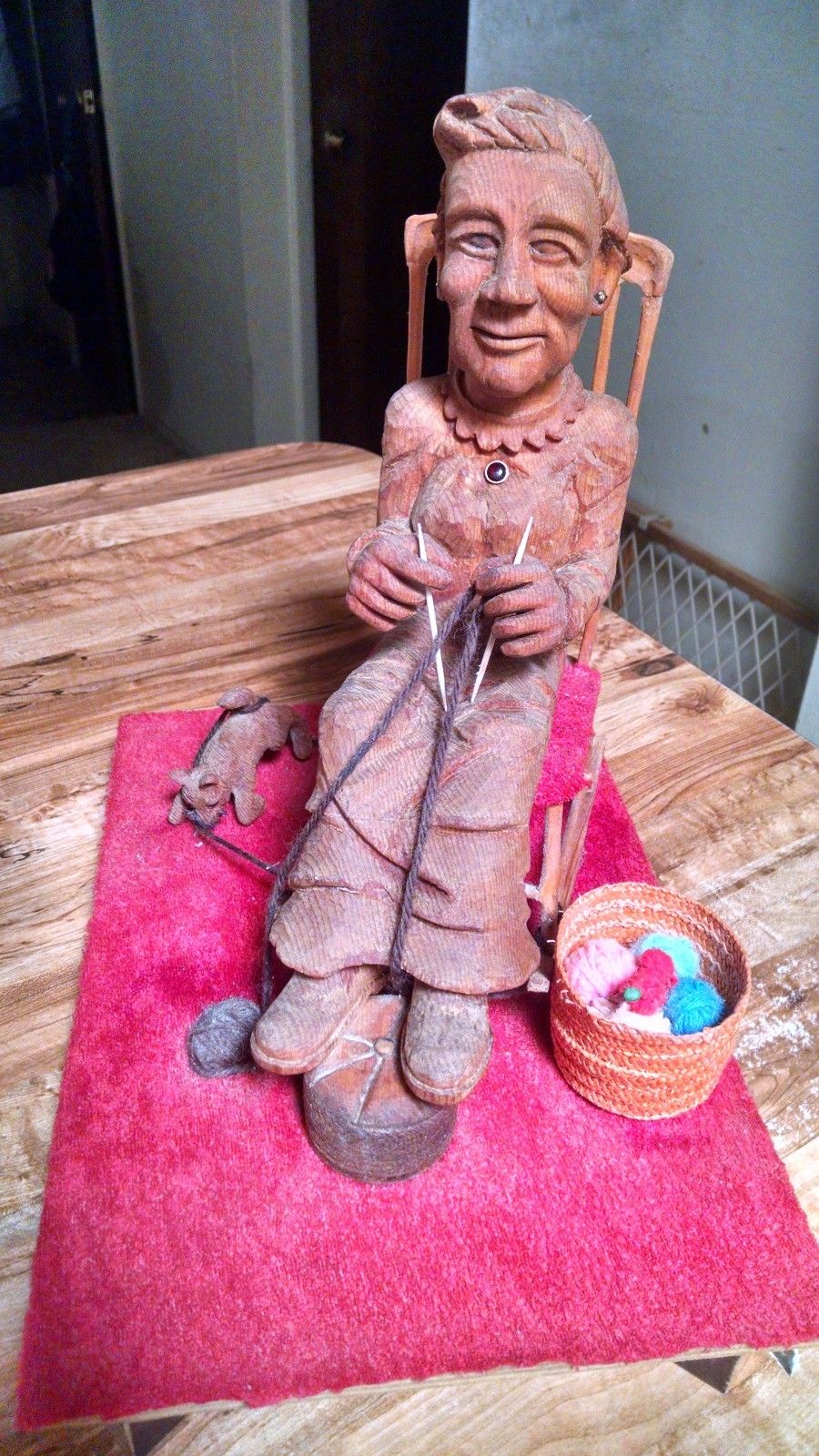 Title (ebay affiliate link): * FOLK ART * HAND CARVED * GRANDMA KNITTING * WITH DOG PLAYING * AMAZING!!!!! *