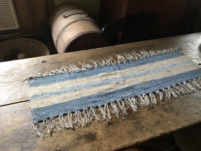 Title (ebay affiliate link): LONG Antique Candle Mat Table Rug Runner Blue & White Country AAFA Textile