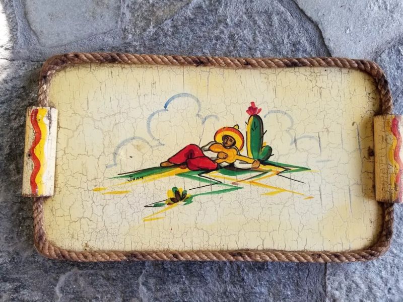 Title (ebay affiliate link): VINTAGE MONTEREY STYLE PAINTED WOODEN TRAY MEXICAN SCENE SIGNED JUAN