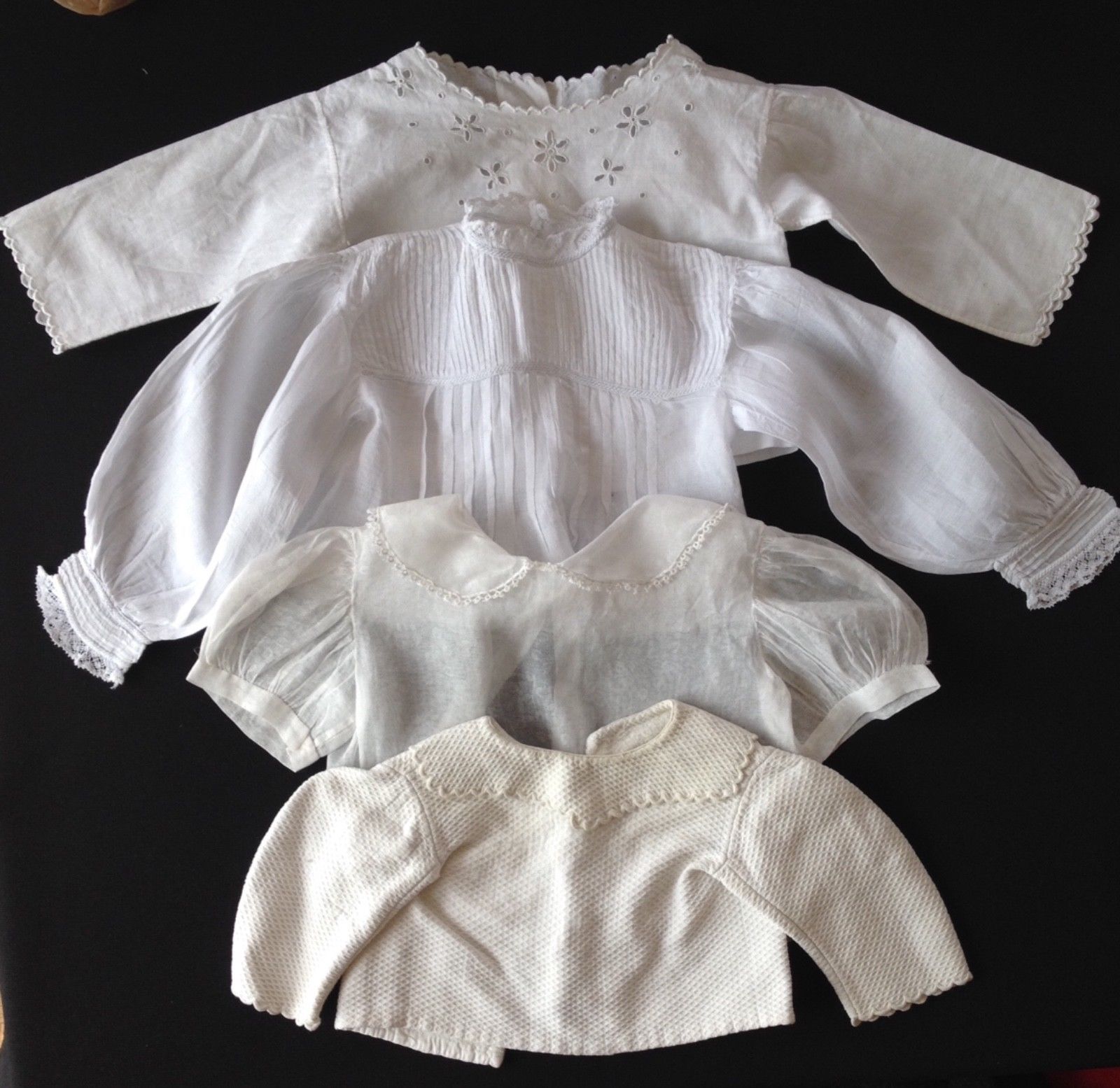 Title (ebay affiliate link): ANTIQUE FOUR BABY TOPS SUITABLE FOR BIG DOLL,BEAR OR TO MAKE DOLL CLOTHING