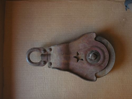 VINTAGE PRIMITIVE STARLINE STAR FARM BARN HAY PULLEY CAST IRON/WOOD