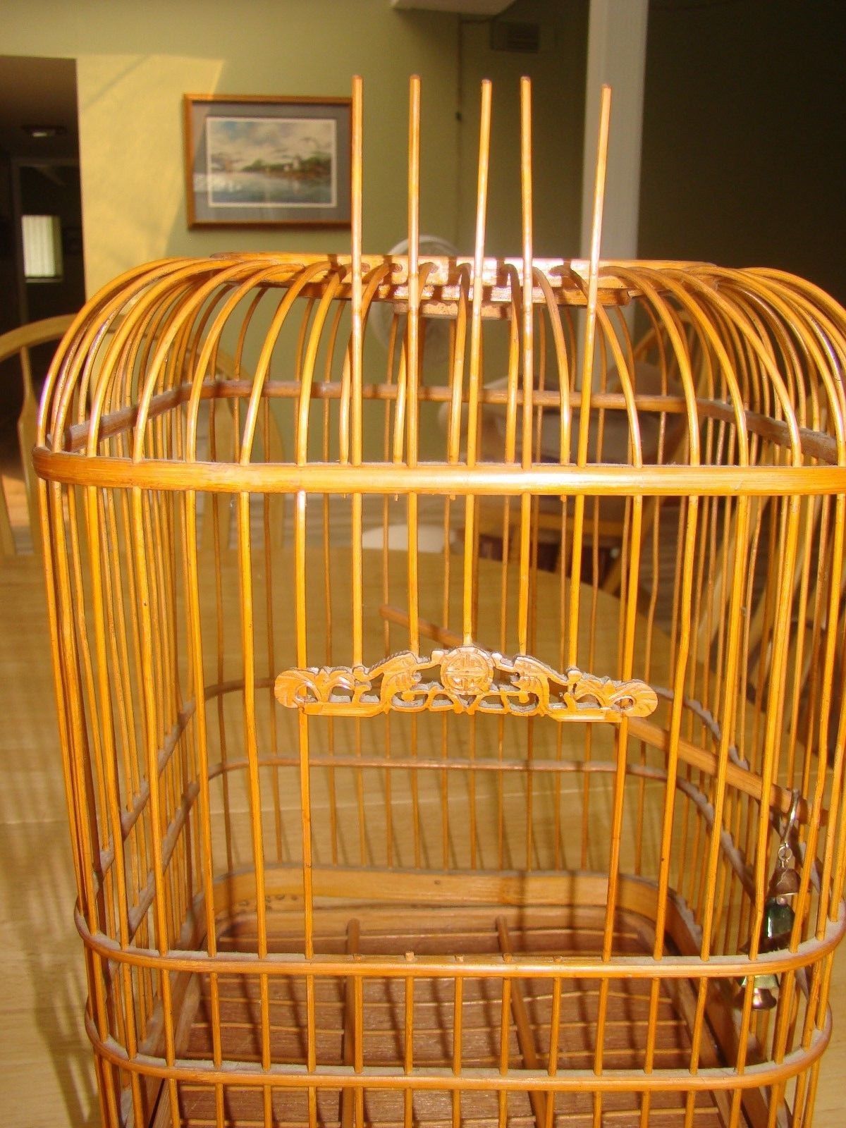 Title (ebay affiliate link): Vintage Asian style bird cage with perch and metal bells