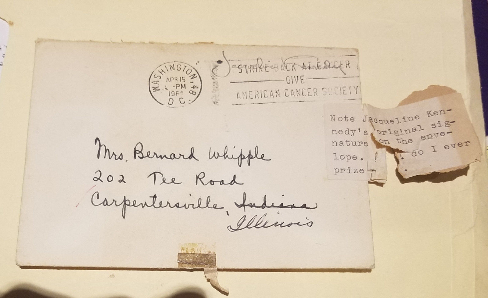 Rare, Jacqueline Kennedy envelope signed by Apr 15 1964