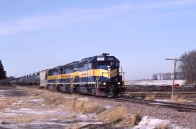 Orig Slide DM&E DME SD40-2 #6200+2 @ Blooming Prairie