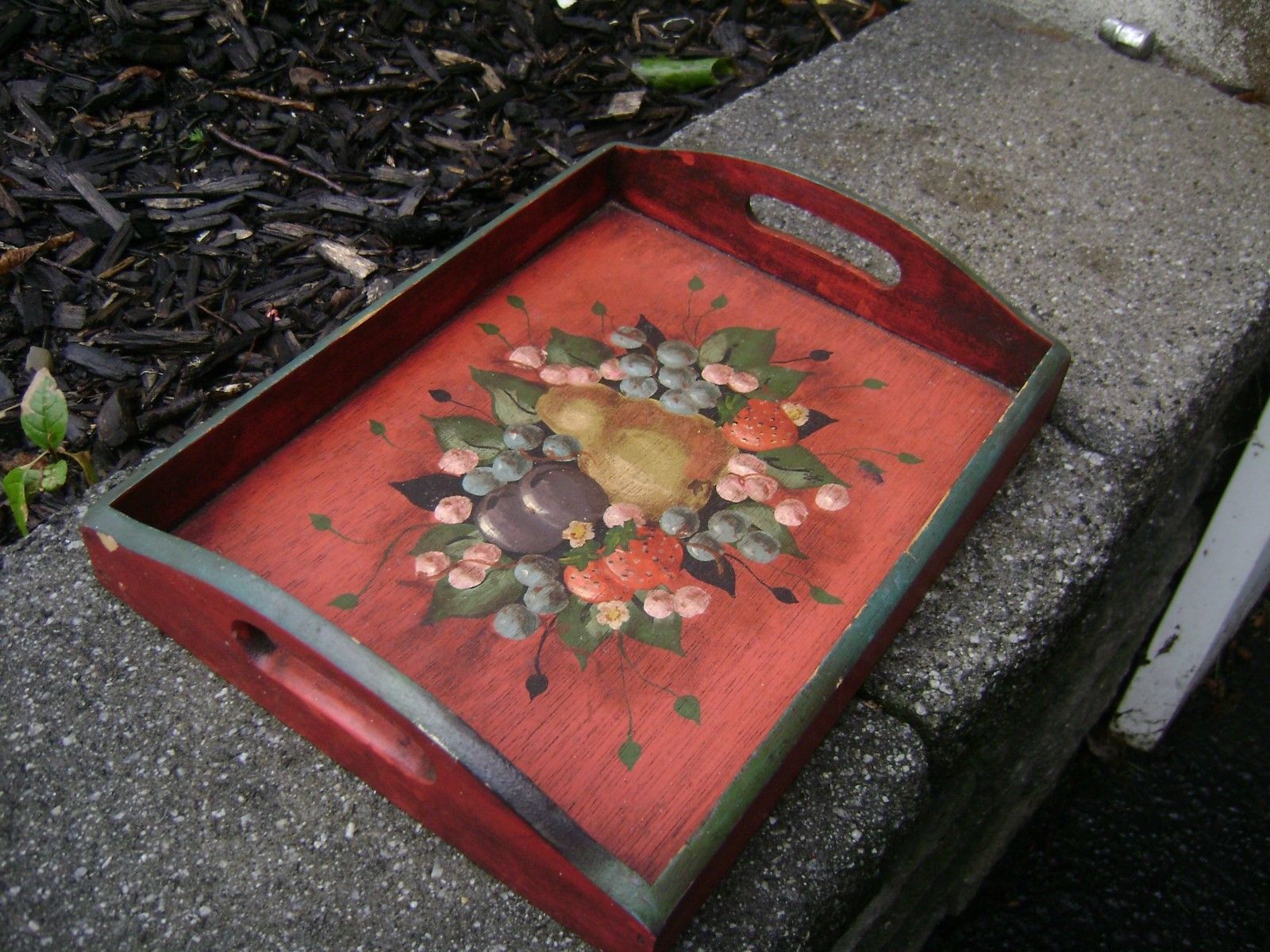 Title (ebay affiliate link): Vintage hand painted Wooden Decorative Serving Tray Fruit still life Tea tray