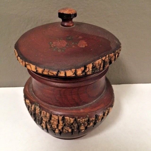 Antiques, Wooden Ware, Adirrondack, Box w/lid, hand painted Rose,1900-1940,USA