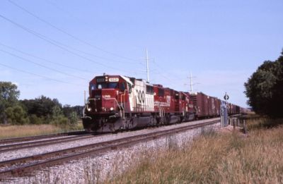 Orig Slide SOO LINE SD60 #6021+2 SD60's @ Portage WI