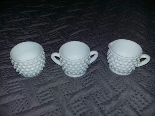 Title (ebay affiliate link): Vintage Fenton Milk Glass, Hobnail small Sugar & Creamer plus bonus 3 pieces