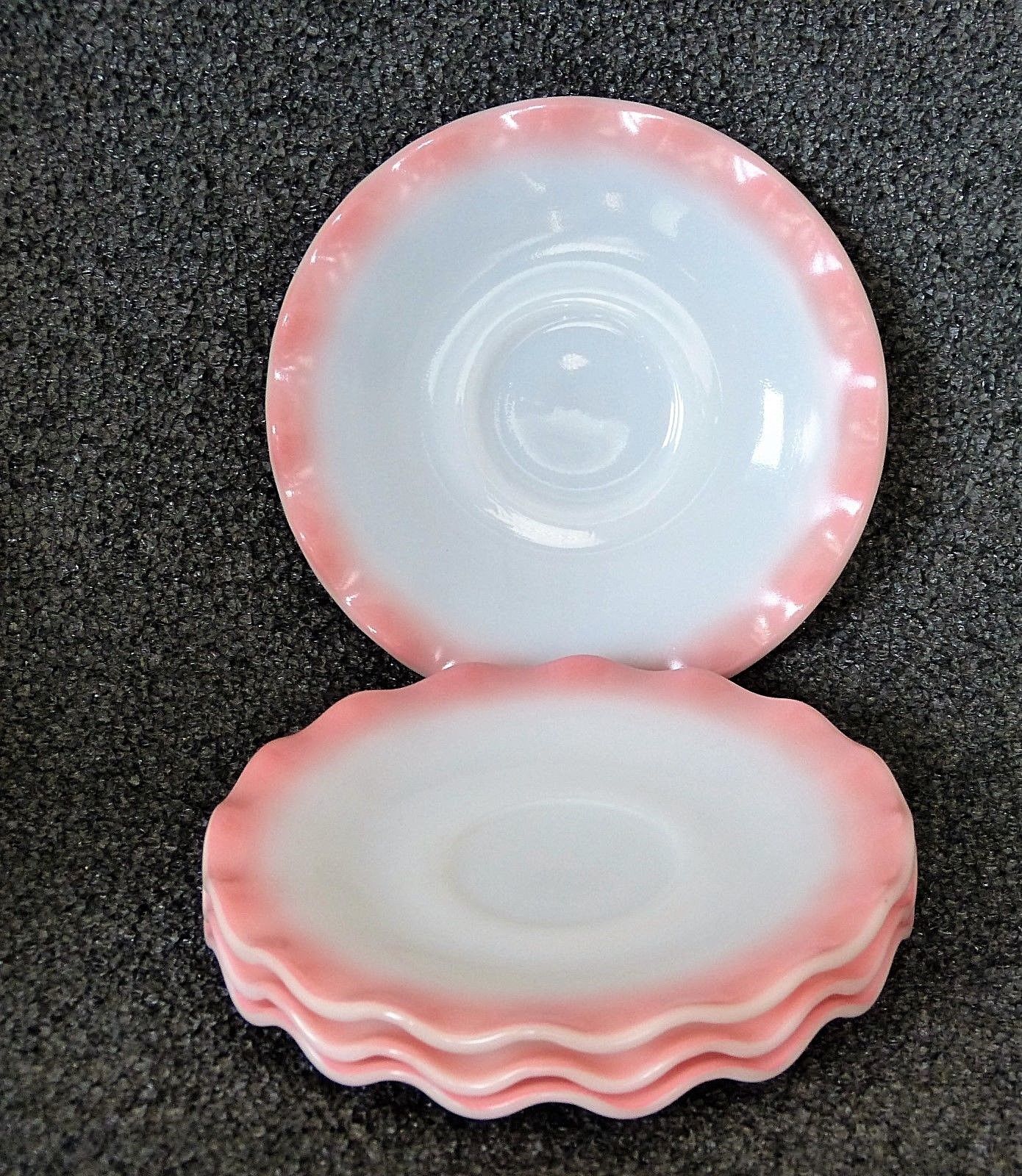 Title (ebay affiliate link): 4 Vintage Hazel Atlas Milk Glass Pink Ripple Crinoline Saucer Dish Plates 5.5"