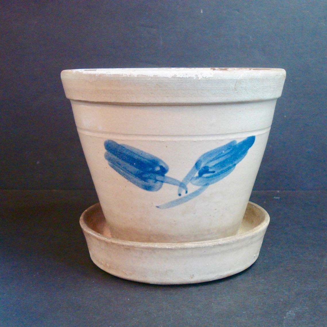 Antique ~ Decorated Stoneware ~ Flower Pot