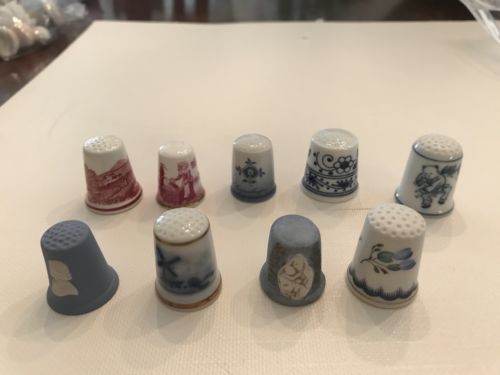 Antique Thimbles 9 Delft, Transferware And Wedgewood