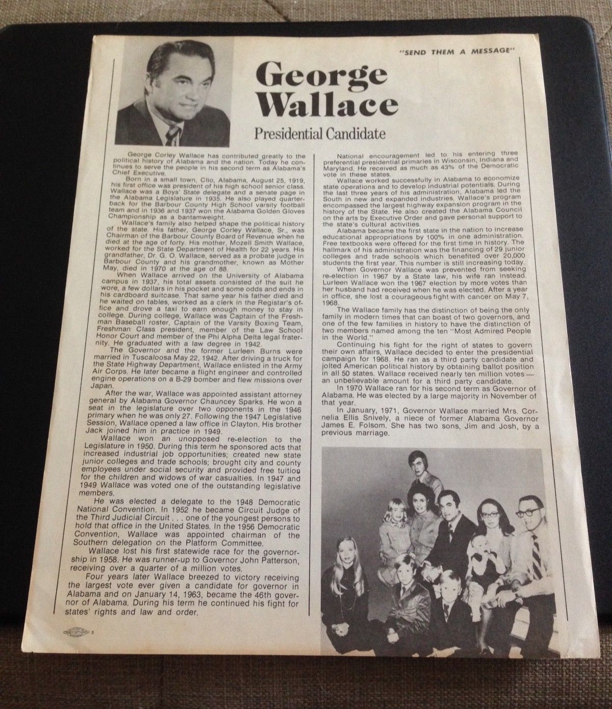 Title (ebay affiliate link): George Wallace two sided campaign piece for President