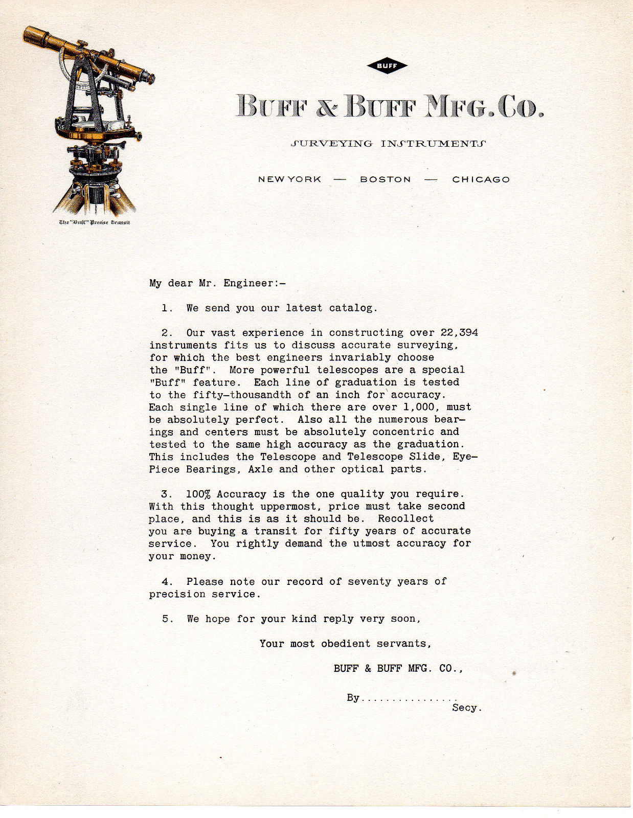 1900s BUFF & BUFF MFG, BOSTON MASSACHUSETTS SURVEYING EQUIPMENT COLOR LETTERHEAD