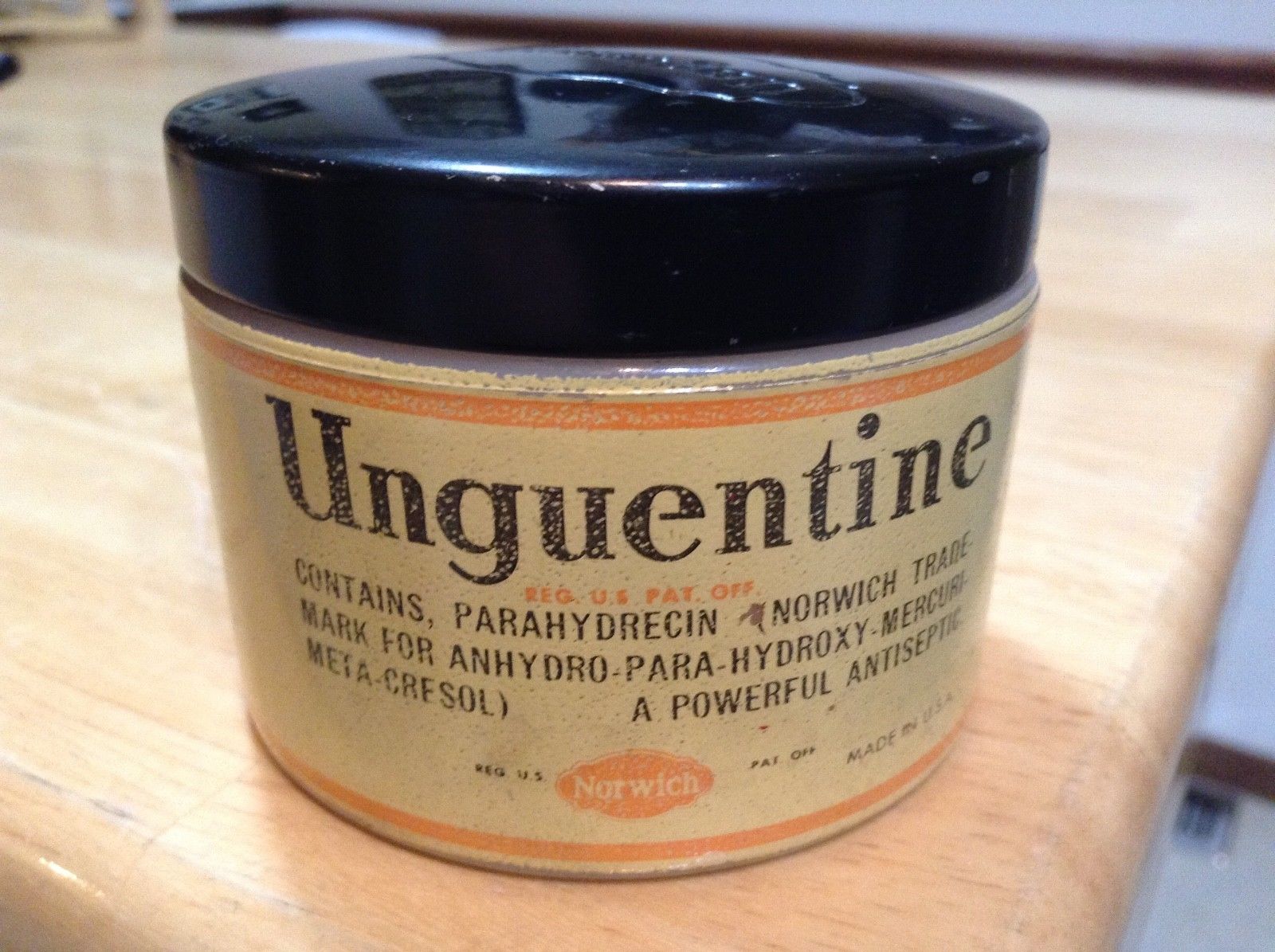 Title (ebay affiliate link): RARE Vintage UNGUENTINE Norwich Pharmacal Company PAINTED LABEL MILK GLASS JAR