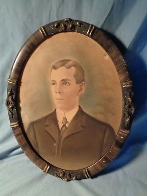 Title (ebay affiliate link): Antique OVAL WOOD FRAMED Colorized Portrait gesso decoration GRAINED PAINTED