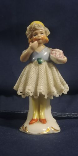 Vintage Made In Germany Porcelain Figurine With Glass Dress!