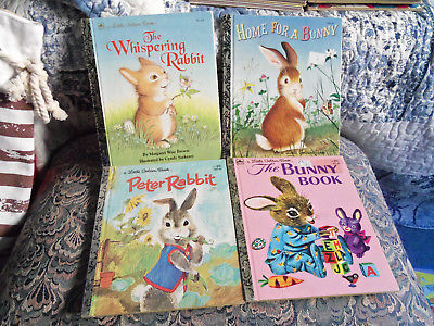 VINTAGE,4,LITTLE GOLDEN BOOKS-HOME FOR BUNNY,WHISPERING RABBIT,BUNNY BOOK,PETER.