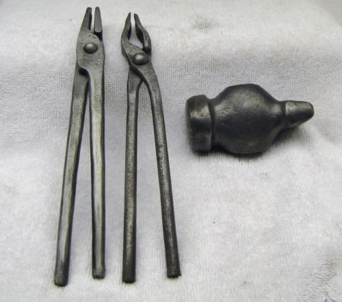 SMALL BLACKSMITH TONGS, 8 1/4" (2) + HAMMER HEAD