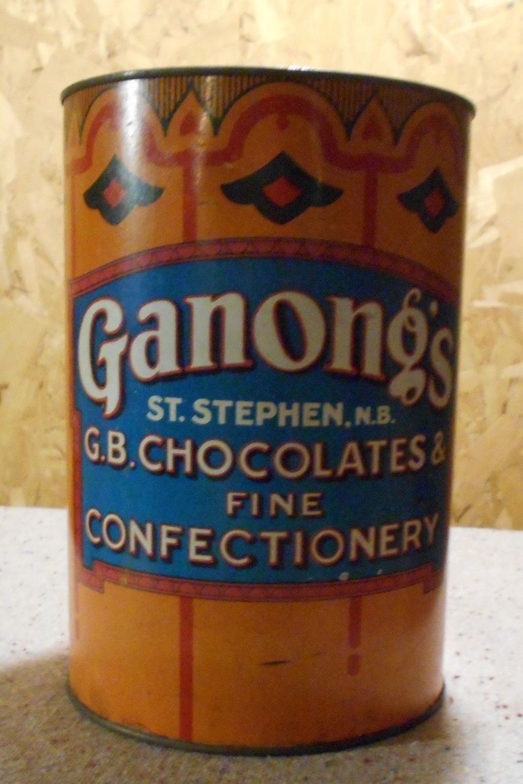 Title (ebay affiliate link): Vintage Metal Chocolates Candy Confectionery Advertising Tin Ganong''s Canada