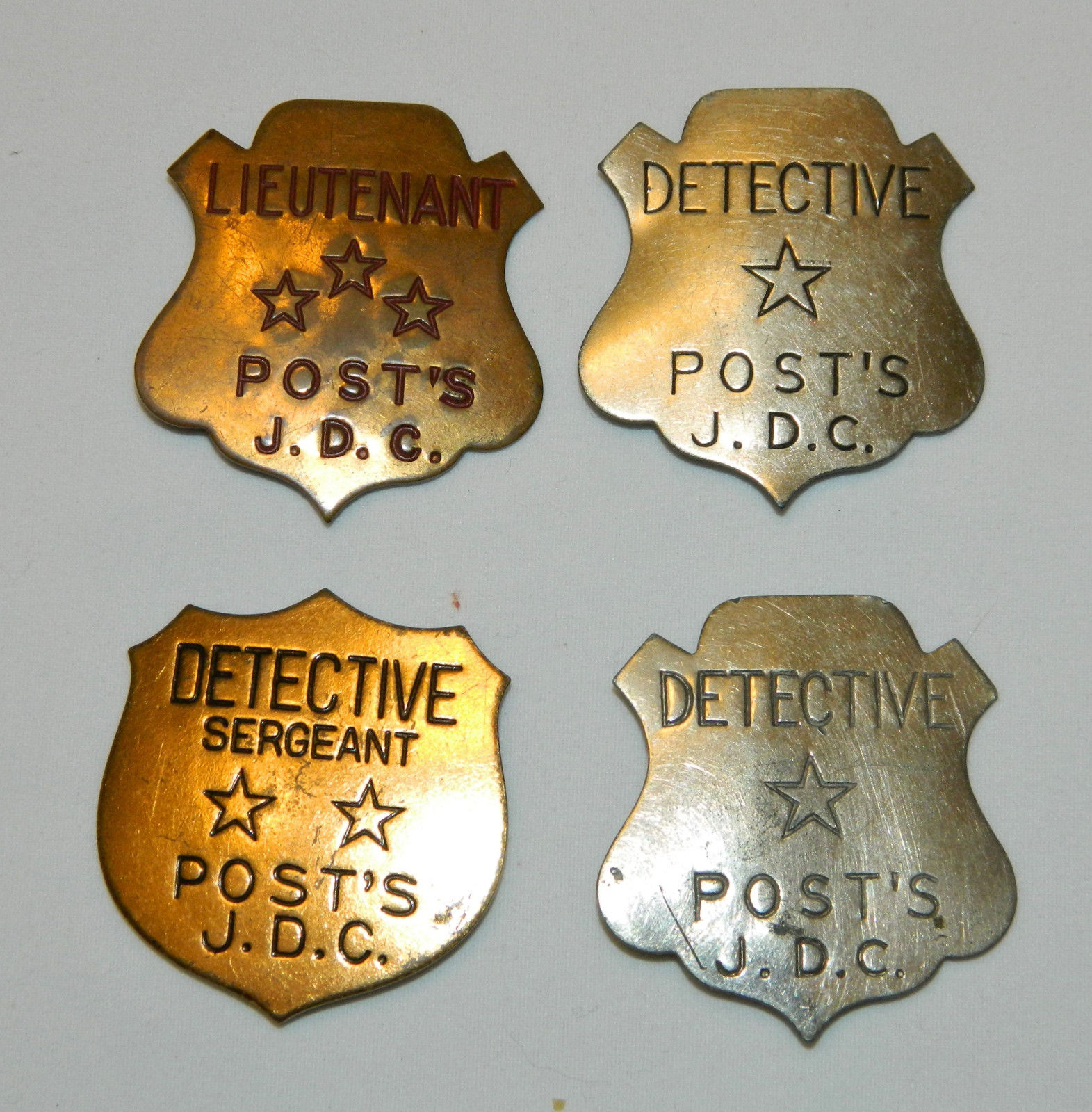 Antique Post Cereal Premium Badge Detective and Lieutenant - Total of 4 Badges