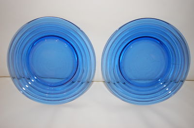 2 VINTAGE COBALT MODERNTONE LUNCH PLATES 8" HAZEL ATLAS