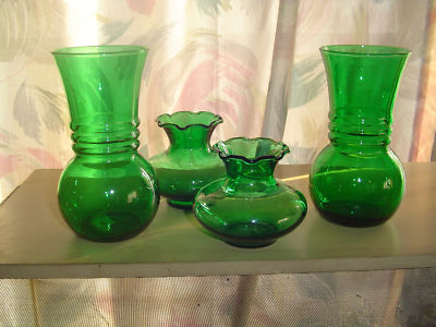 4 PRETTY DARK GREEN DEPRESSION VASE'S -L@@K