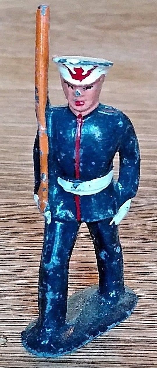 VINTAGE LEAD TIN SOLDIER MARINE MARCHING ORANGE RIFLE