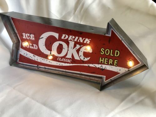 Title (ebay affiliate link): ANTIQUE VINTAGE COKE COLA SODA LEVIS PEPSI MARQUEE LED BULB LIGHT SIGN 16"X7"