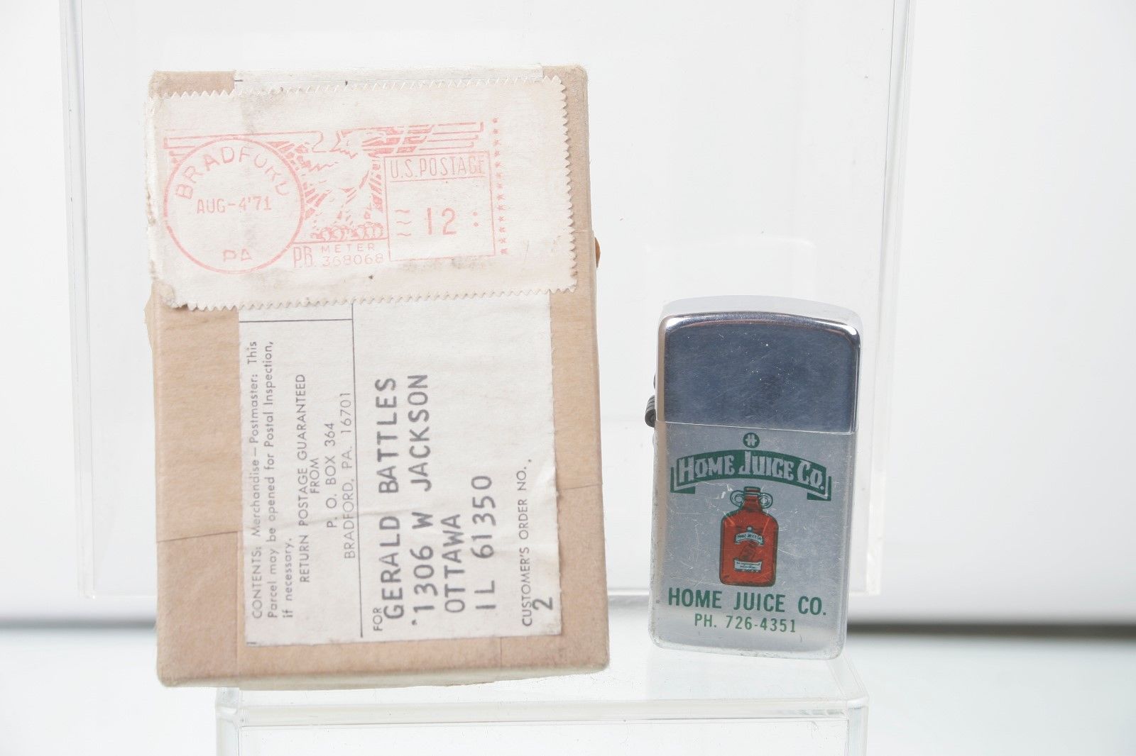 Vintage Park Lighter Advertising HOME JUICE CO. MR. PURE