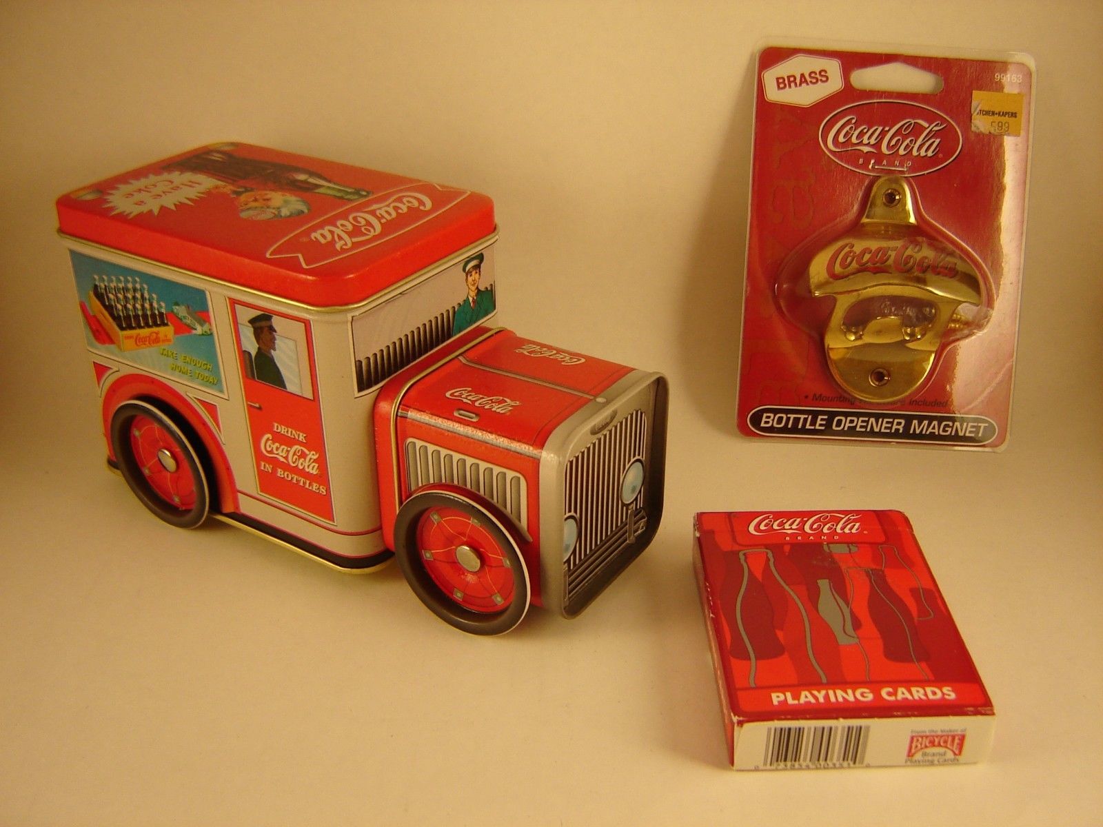 Title (ebay affiliate link): Coca Cola Lot: Tin Truck, Playing Cards, Bottle Opener