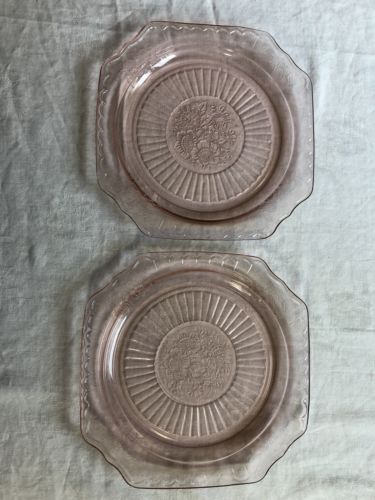 Title (ebay affiliate link): 2 Vintage Hocking Pink Depression Glass Mayfair Open Rose 9 1/2" Plates