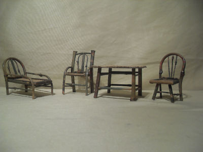 Antique DollHouse Bamboo Rattan Furniture Handmade Set
