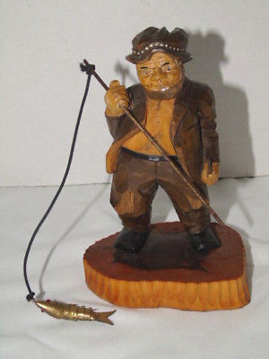 Vintage Signed E. Kjellman Fisherman Carved Wood Figure